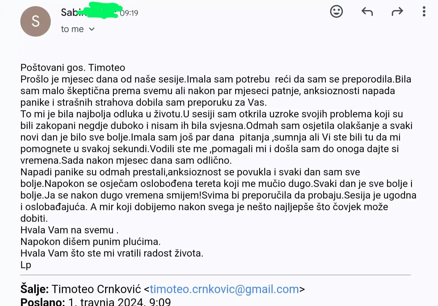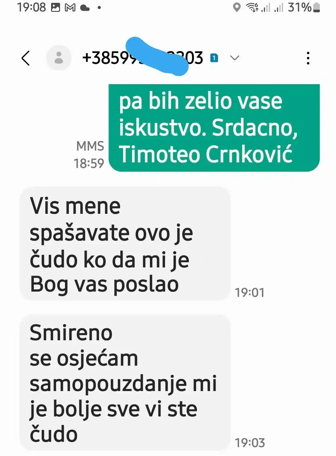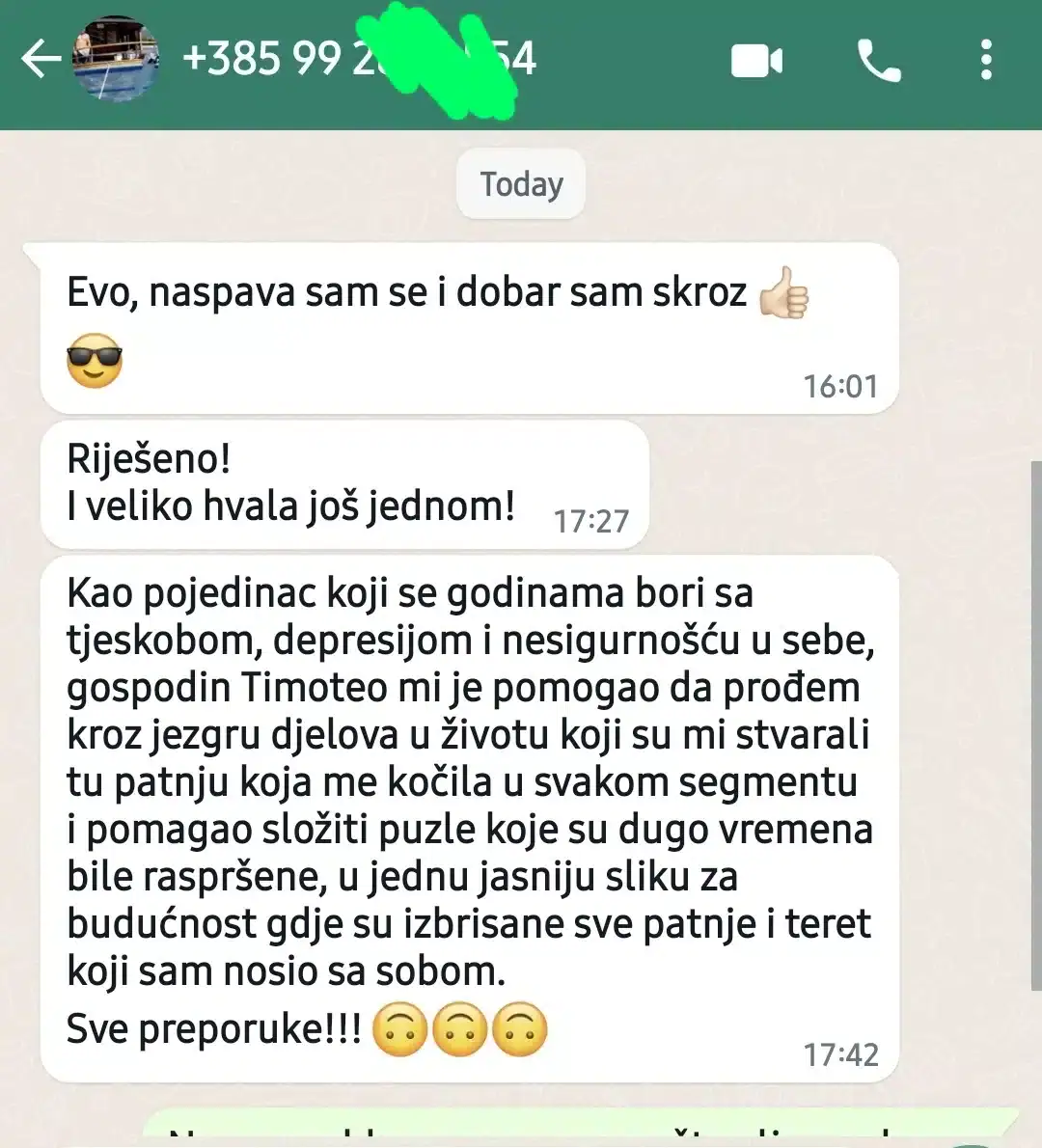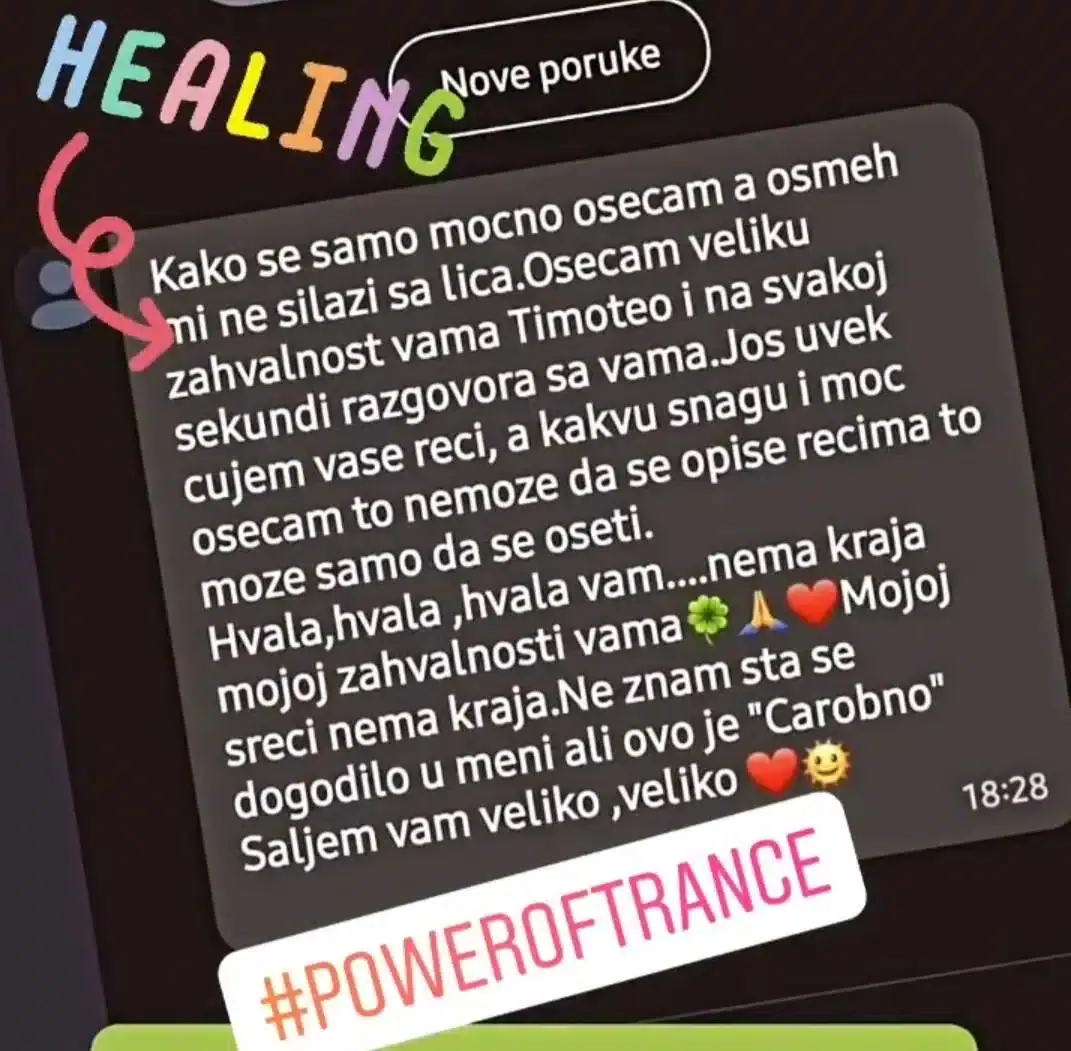 Više od 27 privatnih poruka zahvale upućenih Timoteu dokaz su učinkovitosti, ali i trajnosti rezultata proizašlih iz terapije brze transformacije. Pregledajte ih u nastavku.
