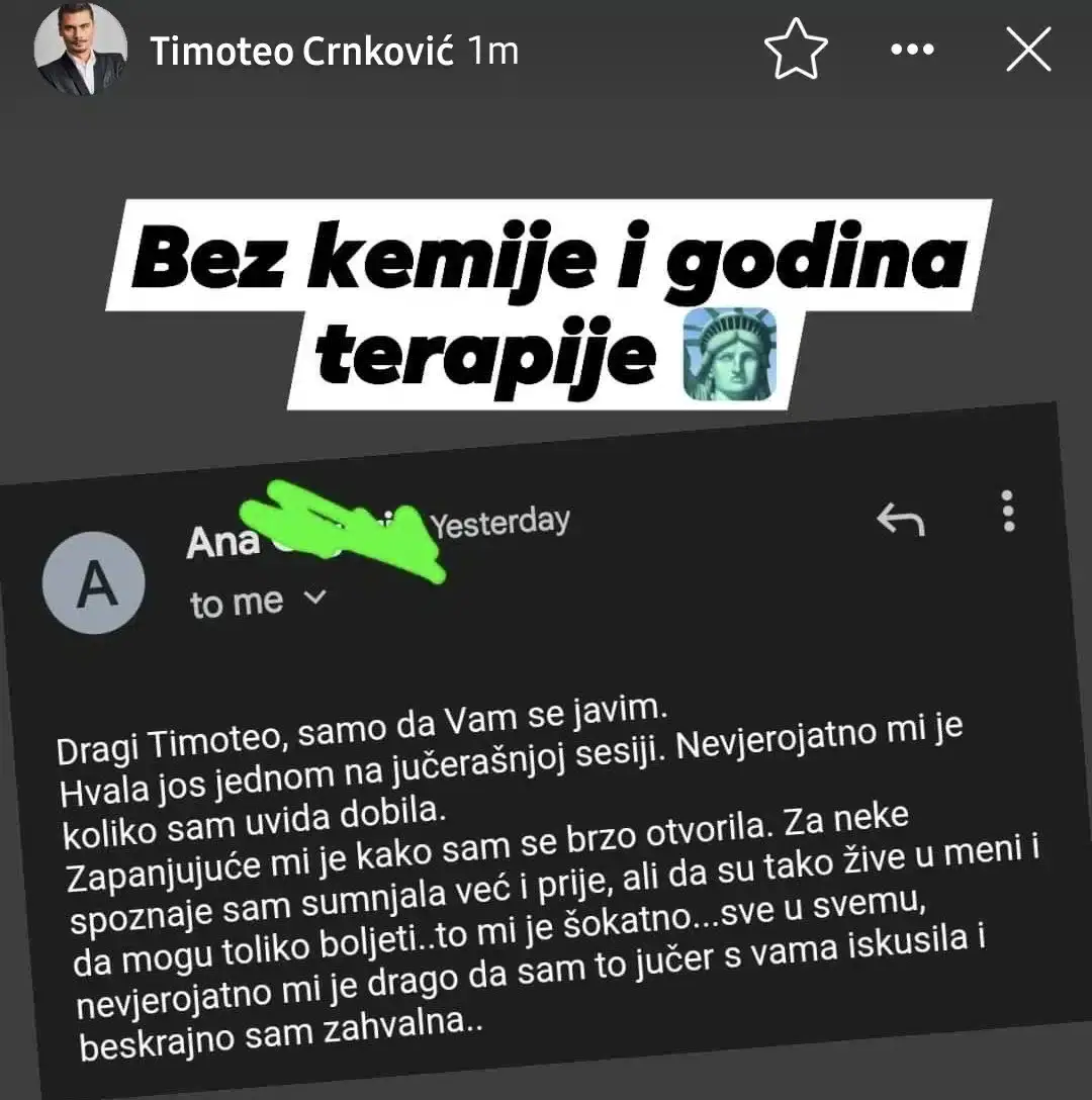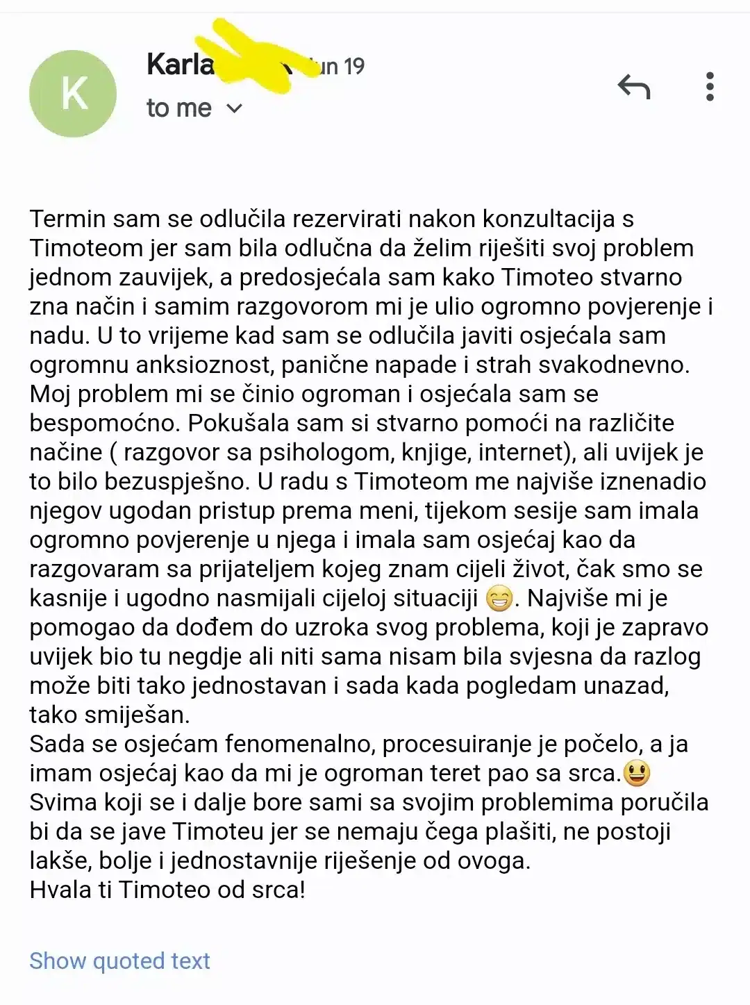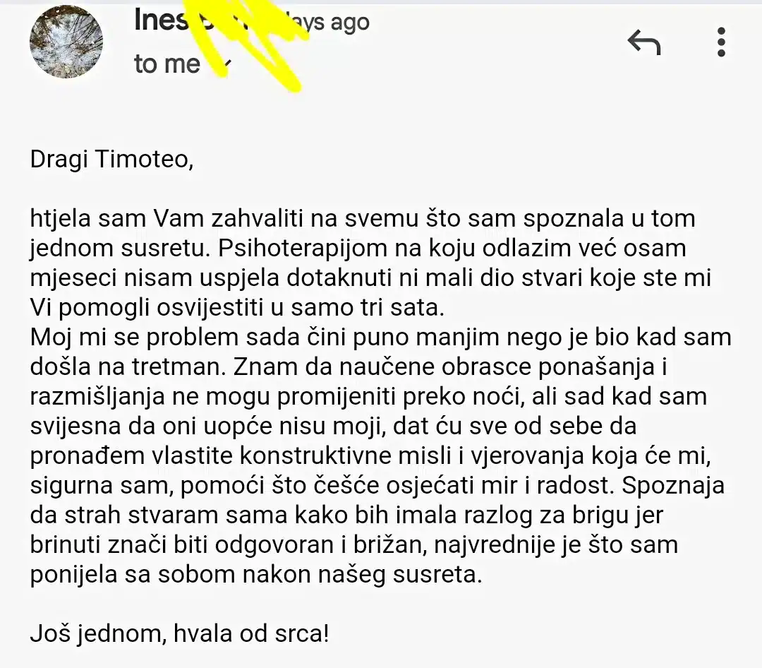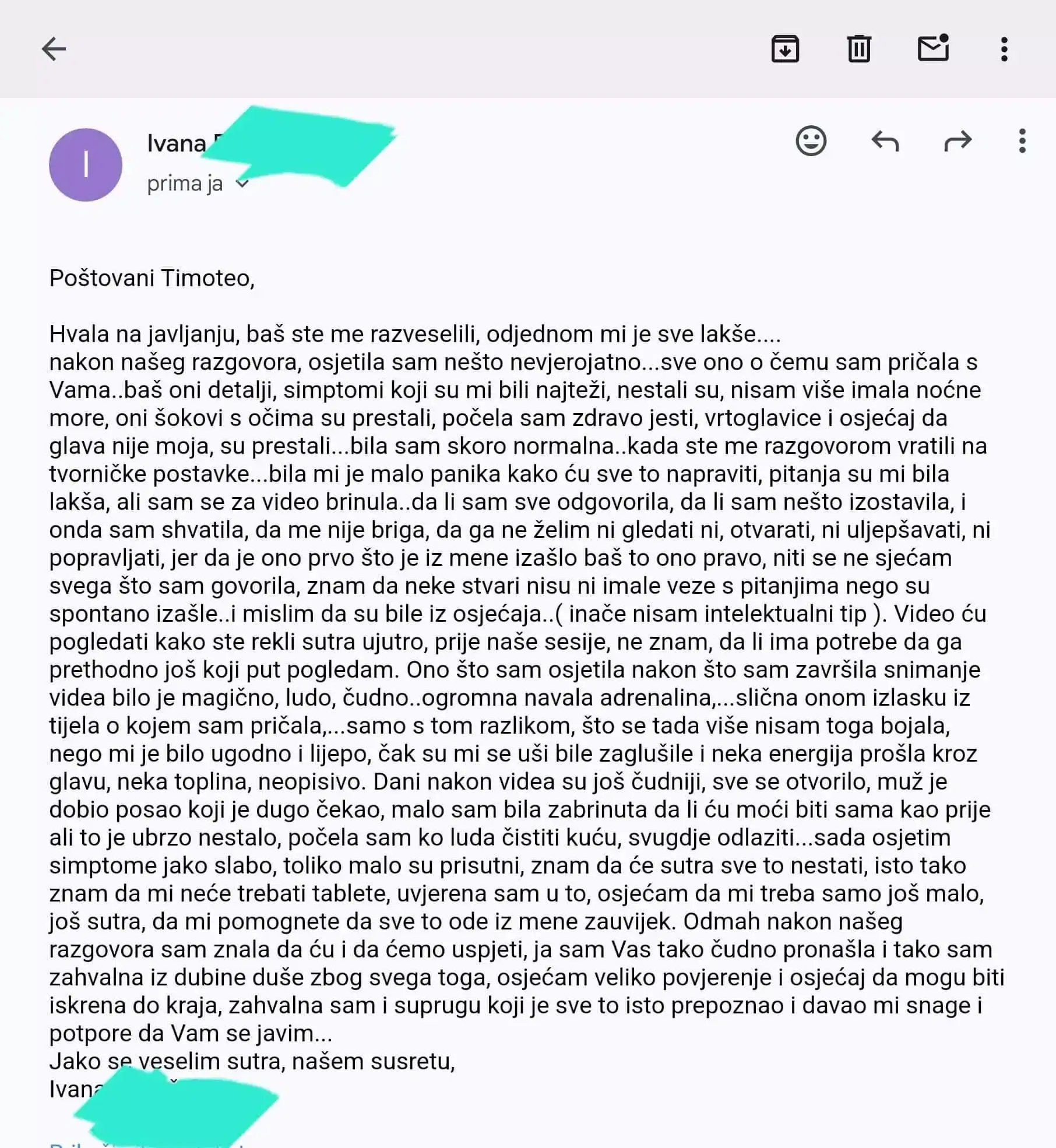 Više od 27 privatnih poruka zahvale upućenih Timoteu dokaz su učinkovitosti, ali i trajnosti rezultata proizašlih iz terapije brze transformacije. Pregledajte ih u nastavku.