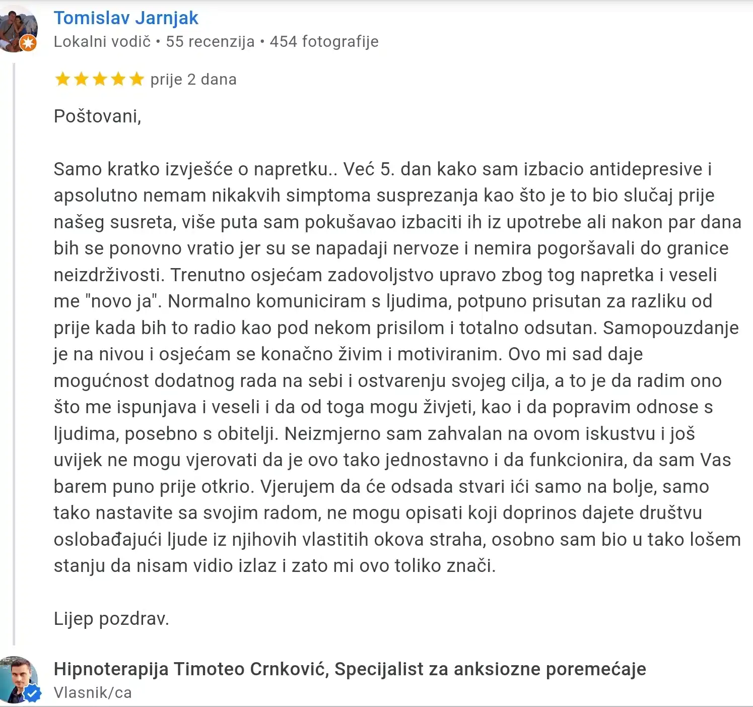 Učinite 1. korak prema postizanju trajne mentalne i emocionalne ravnoteže još danas, te zakažite besplatnu uvodnu konzultaciju s vodećim hipnoterapeutom Timoteom Crnkovićem.