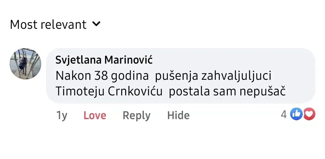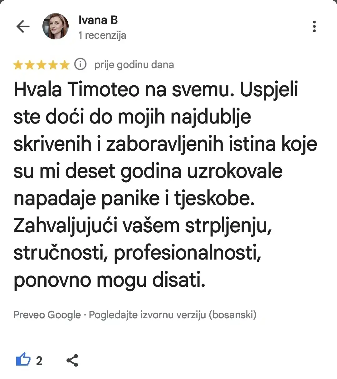 Pogledajte još 100+ iskustava transformiranih klijenata koji su riješili svoj problem, te nastavili živjeti punim plućima i s osmijehom na licu.